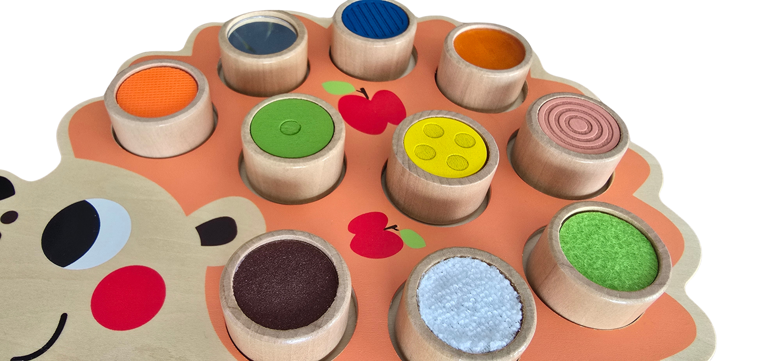 Drvena senzorna igračka Jež savršen je izbor za poticanje razvoja dječjih osjetila i finih motoričkih vještina. Dizajnirana u obliku simpatičnog ježića, igračka sadrži 11 različitih senzorskih elemenata koje dijete može dodirivati, prepoznavati i umetati na pravo mjesto.